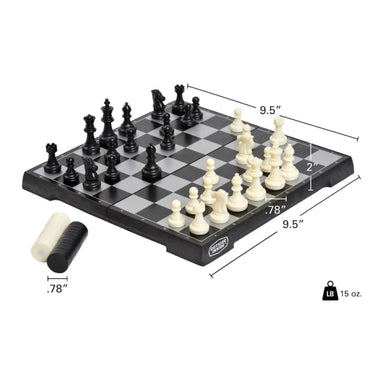This large folding magnetic board provides more playing ease yet is compact enough to pack along, keeping game pieces in place while on the move.
