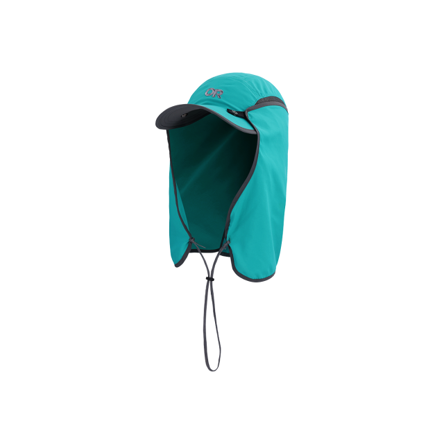 The Sun Runner Cap features mesh side panels for maximum ventilation, a removable cape for extended sun protection, and a moisture-wicking, quick-drying sweatband for active use.