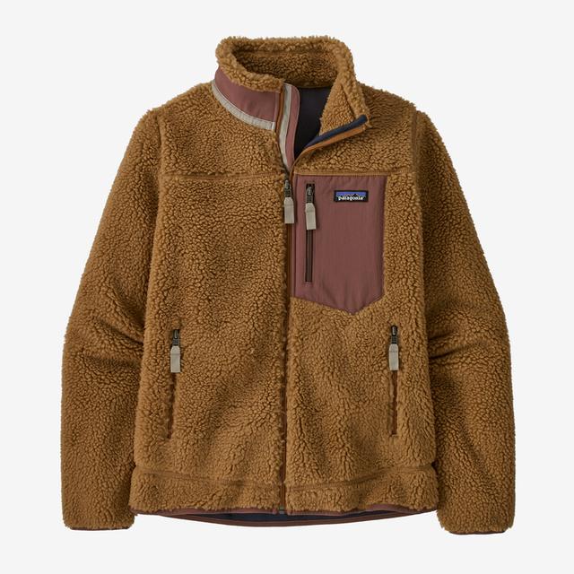 The Retro-X Jacket is made from plush polyester fleece (50% recycled) with a moisture-wicking, brushed-mesh lining and windproof/breathable barrier that completely shuts out blustery weather. Classic Retro-X styling includes a SUPPLEX nylon stand-up collar, vertical zippered chest pocket and two handwarmer pockets. Brushed polyester lines the zippered handwarmer pockets, which have grosgrain zipper pulls. Full-length zip with internal wind flap keeps out chilly gusts. Hip length. Fair Trade Certified sewn.