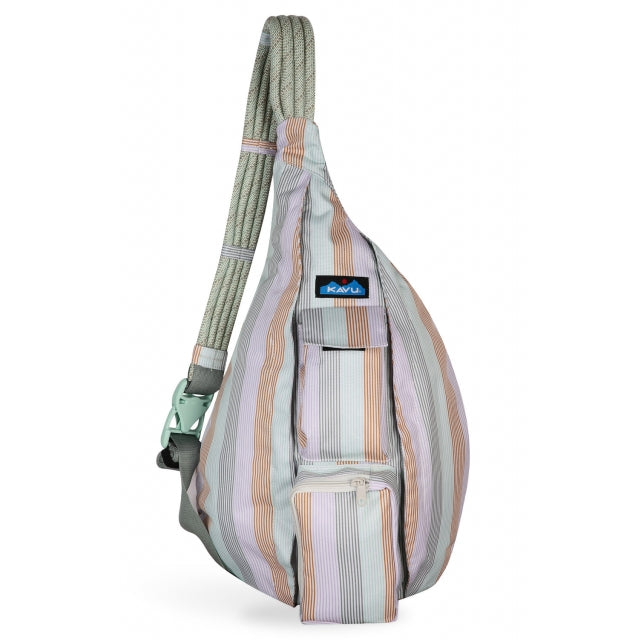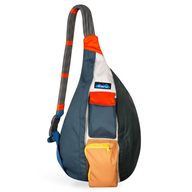 The Rope Sling fits the body like a bag should. It's similar in size and design to its fraternal twin the KAVU Rope Bag with one exception: the Rope Sling is made of polyester, making it water resistant.It also has an ultra-comfortable adjustable rope shoulder strap with side release buckle, two vertical zip compartments, two key or cell phone pockets, and a padded back with KAVU embroidery. Plus, it comes in a wide variety of colors and patterns - so, express yourself.
