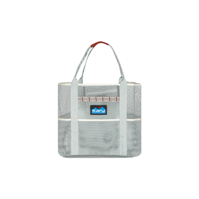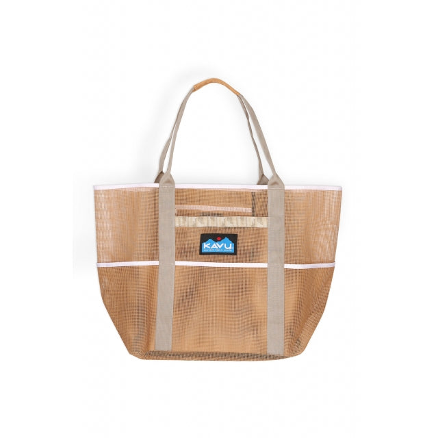 Searching for the perfect beach bag to store all your essentials on your KAVU days? Look no further and let us introduce you to the Alder Lake Tote. Loaded with pockets to keep small essentials secure, and enough storage to fit towels, snacks, books, games, flip flops and your favorite 6-pack; this will be your go-to bag all summer long. Made with quick-dry durable mesh fabric to help the sand sift through and prevent a sandy car or house. Throw everything in the Alder Lake Tote and Get Busy Livin'!Stand alone large mesh tote with pockets galore, fixed / pinched webbing shoulder straps, one main compartment with contrast binding, one exterior stash pocket with pattern webbing detail, four additional surrounding slip pockets with contrast binding, internal hanging zip and slip pocket, interior seam binding.